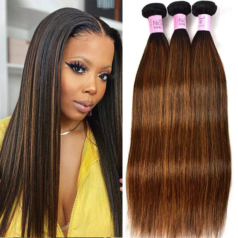 UNice Hair Brown Blonde Straight Human Hair Weave 3 Bundles, Brazilian 100% Virgin Unprocessed Remy Hair Ombre Highlight Color Hair Extensions 100g/pc (10 12 14)
