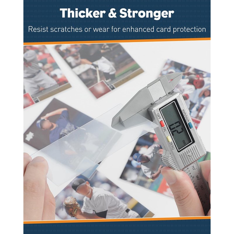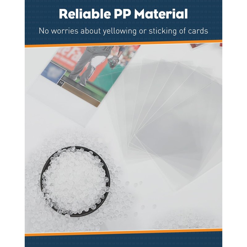 - Ultra Clear: Featuring high transparency on both sides, the baseball card sleeves showcase your collection with exceptional clarity and visual effects. Conveniently display your cards to friends without taking them out, preventing accidental damages