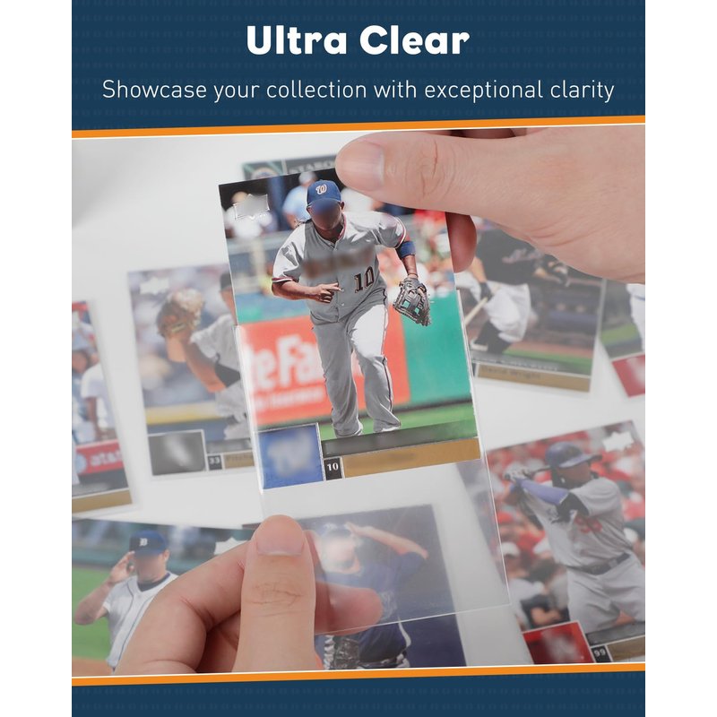 - Ultra Clear: Featuring high transparency on both sides, the baseball card sleeves showcase your collection with exceptional clarity and visual effects. Conveniently display your cards to friends without taking them out, preventing accidental damages
