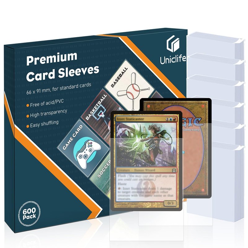 Uniclife 600 Counts Trading Card Sleeves Ultra Clear Penny Sleeves for Trading Cards Baseball Card Sleeves Card Protectors for Sports Cards MTG Cards Football Cards Yugioh Cards Photocards, 66 x 91 mm