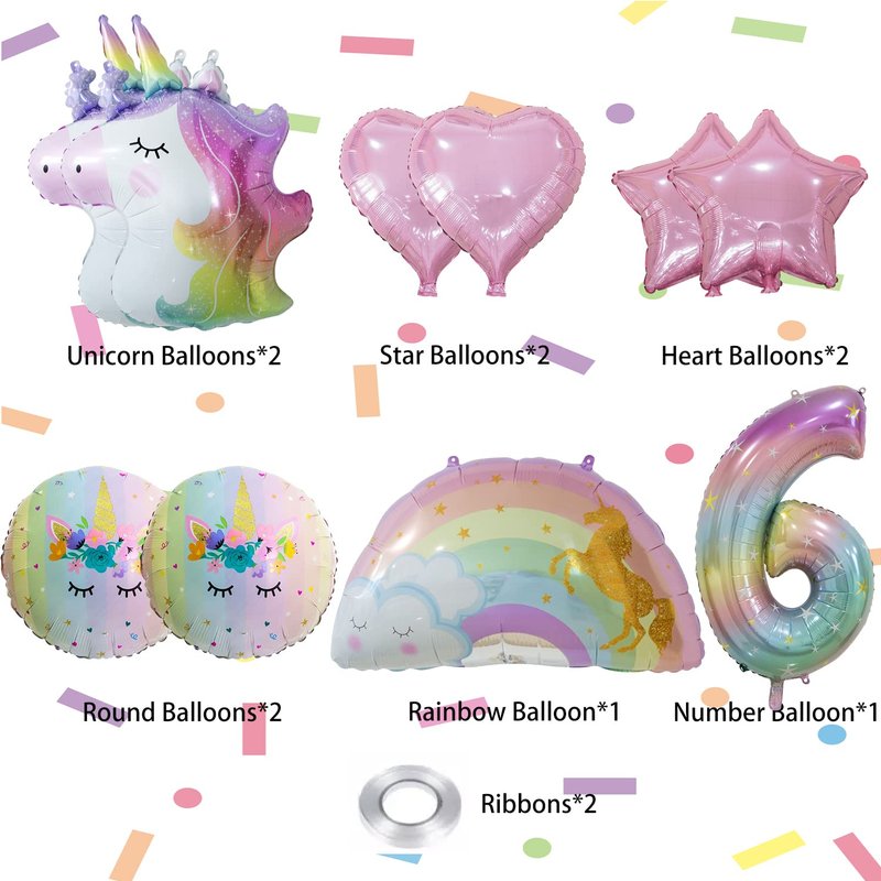 Unicorn Balloons Unicorn Birthday Party Decorations for Girls with Heart Star Rainbow Balloons Wedding Baby Shower Unicorn Party Supplies (Number 6)