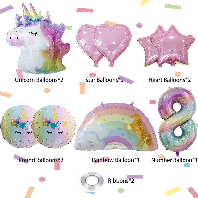 Unicorn Balloons Unicorn Birthday Party Decorations for Girls with Heart Star Rainbow Balloons Wedding Baby Shower Unicorn Party Supplies (Number 8)