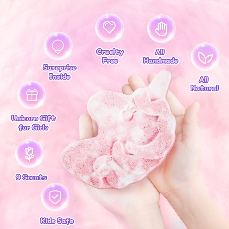 - 💌BEST CUSTOMER SERVICE: If the unicorn bath bombs for kids/toddler bath bombs/bath bombs for girls/kids bath bombs with surprise inside/bath bombs kit is damaged during transportation, please understand,and please contact us at the same time, we will give you the best service and replace it. If you have any questions, please feel free to contact us, we will do our best to give you the best service, and reply you 24 hours. All for your better experience and to provide you with better service.