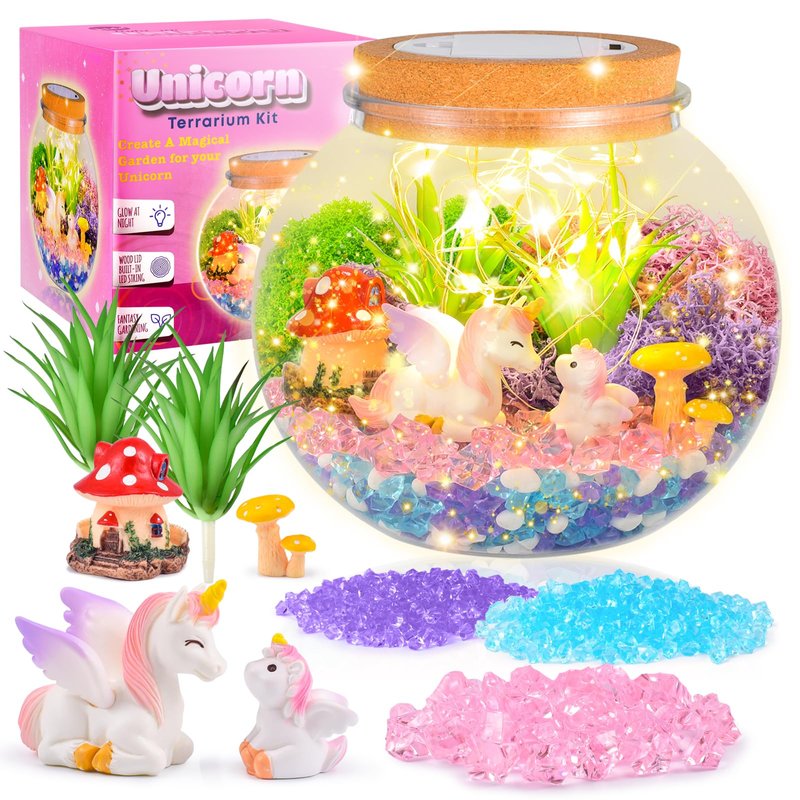 Unicorn Gifts for Girls - Light up Unicorn Terrarium Kit for Kids - DIY Unicorn Arts & Crafts Toy - Birthday Gifts for Kids Age 5 6 7 8-12 Year Old Girl Gift