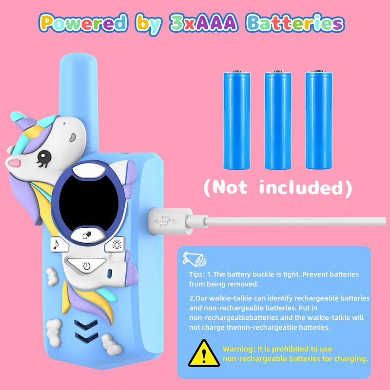 Unicorn Kids Walkie Talkies Rechargeable, 2 Miles Range 3 Channels 2 Way Radio, Birthday Gifts for Boys Girls,Family Games Outdoor Hiking Camping,3-12 Years Old Toys (Blue)
