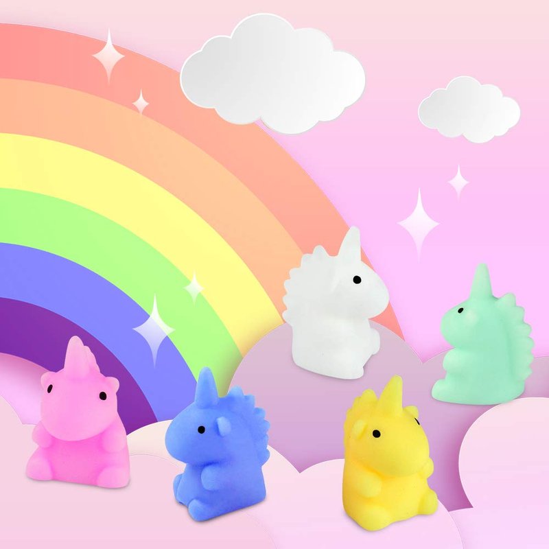Unicorn Mochi Squishy Hand Toys Mini Mochi Squishies Squeeze Toy Birthday Party Favors for Kids Kawaii Squishys Stress Reliever, Pack of 10