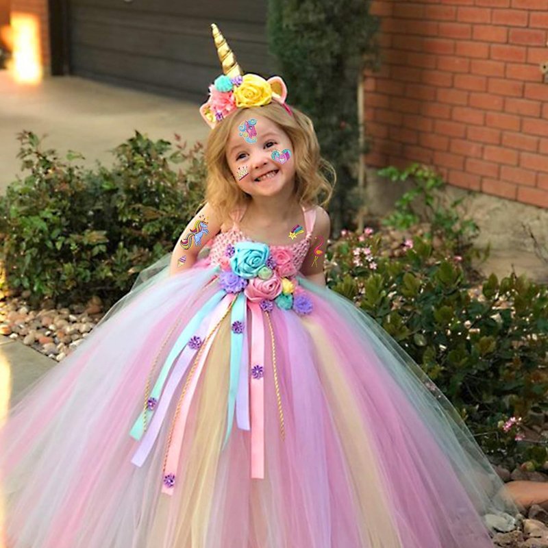 Unicorn Party Supplies Temporary Tattoos - Glitter Unicorn Birthday Party Favors, Cute animated unicorn + Halloween Easter Makeup (6 Sheet)