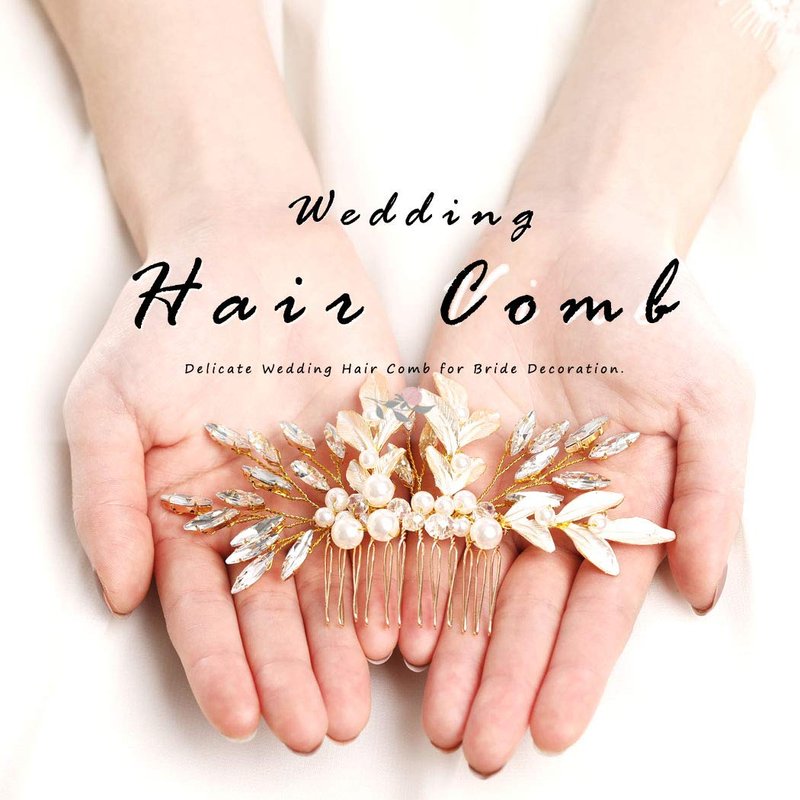 Unicra Bride Wedding Gold Leaf Hair Comb Crtstal Bridal Headpiece Bridesmaids Pearls Hair Accessories for Women and Girls (Gold)