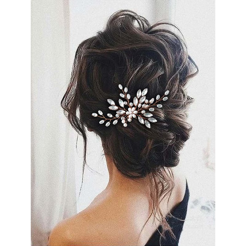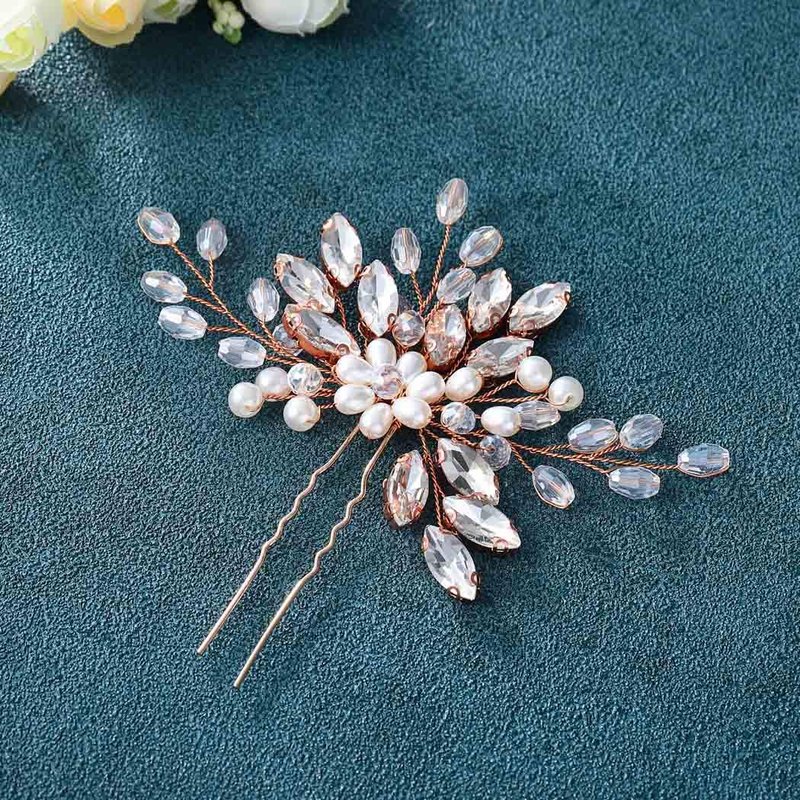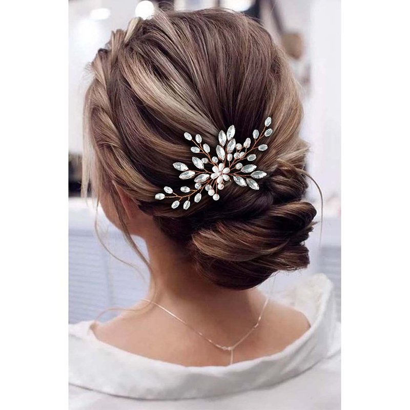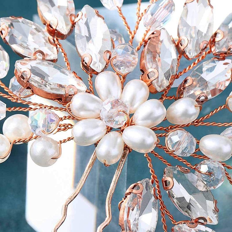 Unicra Bride Wedding Rhinestone Hair Pins Crystal Bridal Hair Pieces Wedding Hair Accessories for Women and Girls (Rose Gold)