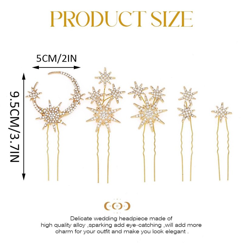 - Rhinestone bridal hair pins in unique design and excellent workmanship, made of star, moon and crystal. Pack of 5.