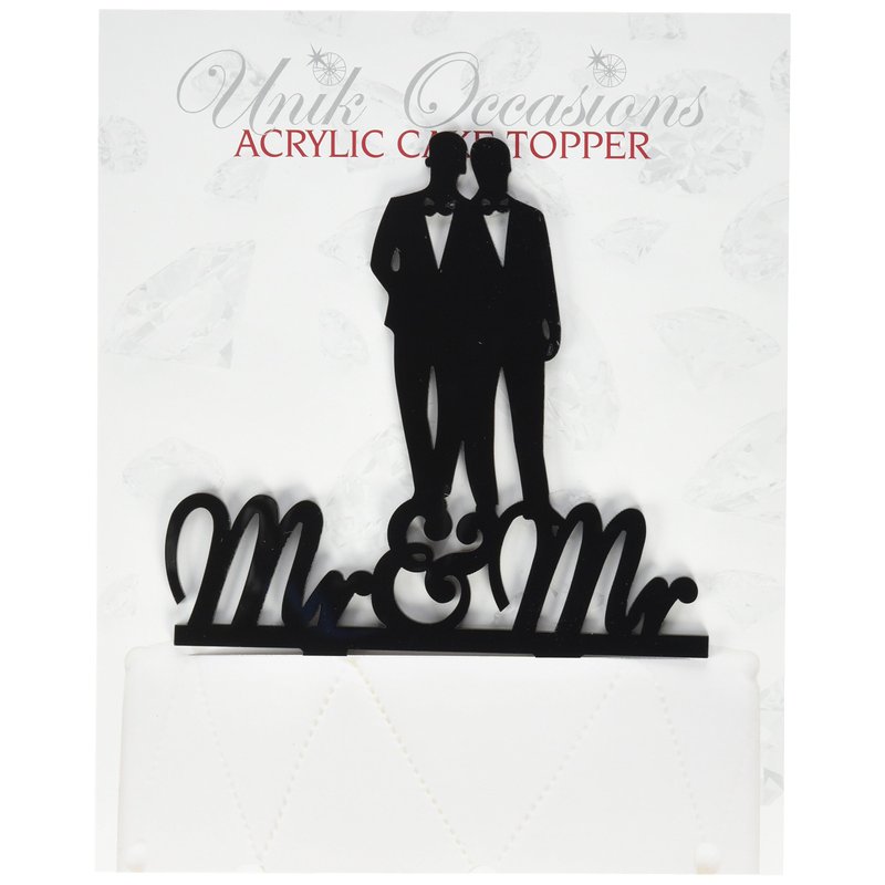 Unik Occasions Gay Couple Silhouette Mr & Mr Acrylic Wedding Cake Topper Black 5x5