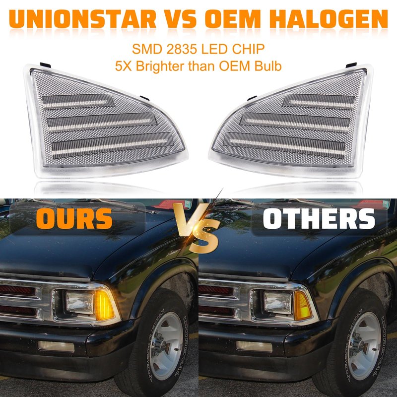 - 【COOL DESIGN】Clear Lens, Chevy Blazer LED Front Corner Light powered by high power SMD 2835 LED Chip diodes on and that form a perfect focal strip with a super bright lighting output. 5X Brighter than OEM Bulb, update and upgrade your car.