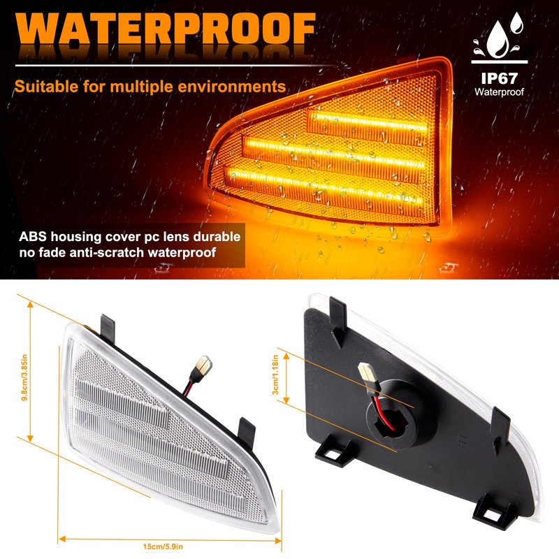 - 【PACKAGE & WARRANTY】2pcs Amber Front LED Side Marker Lamps. If any questions before or after the purchase, please feel free to send an email. We will take your case seriously, and one year manufacturer’s warranty from the date of purchase.