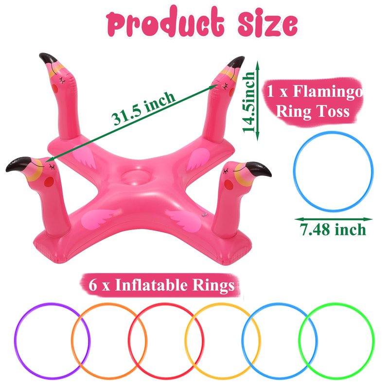 - FUN POOL GAMES: The inflatable flamingo crossed ring toss game is a big hit for kids and friends. Package includes 1Pcs inflatable flamingo crossed ring toss and 6Pcs rings