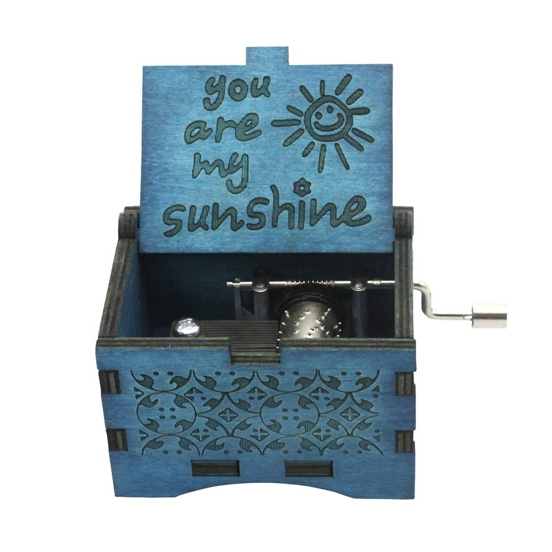 UNIQLED You are My Sunshine Wooden Music Boxes Laser Engraved Hand Crank Classical Wood Sunshine Musical Box Gifts for Birthday Christmas Valentine's Day (Blue Sunshine)