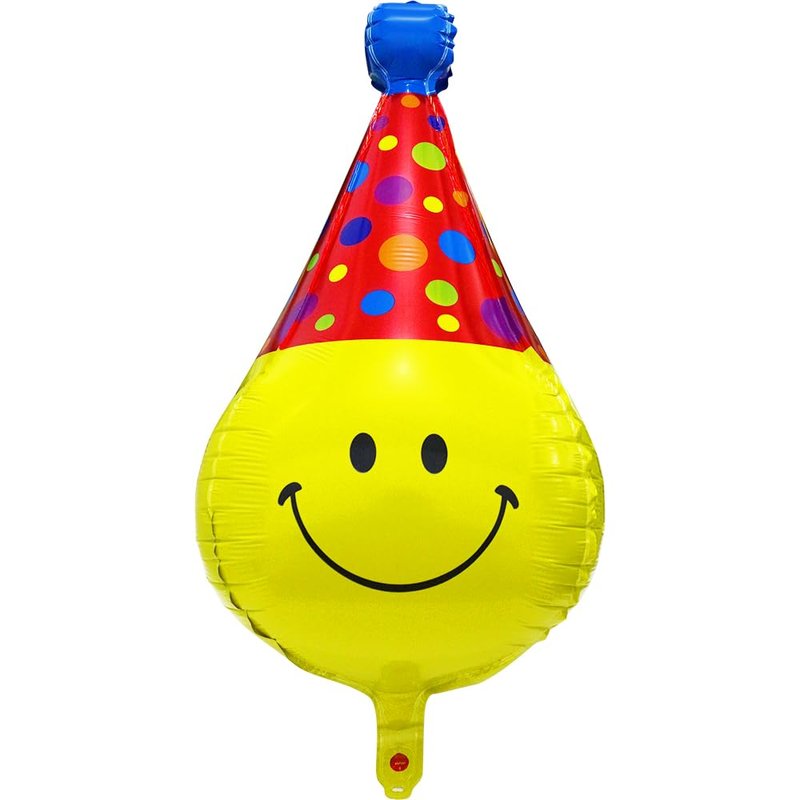 - 6 PACK 4D HAT SMILE BALLOONS HAPPY EMOTICON PARTY SUPPLIES★ Our smile face hat aluminum foil balloons, pack of 6, uninflated size is around 33'' (84 cm) tall * 11.4'' (29 cm) width (it gets smaller and around 28'' when inflated, see picture for size), double side printed & more thicken than other.