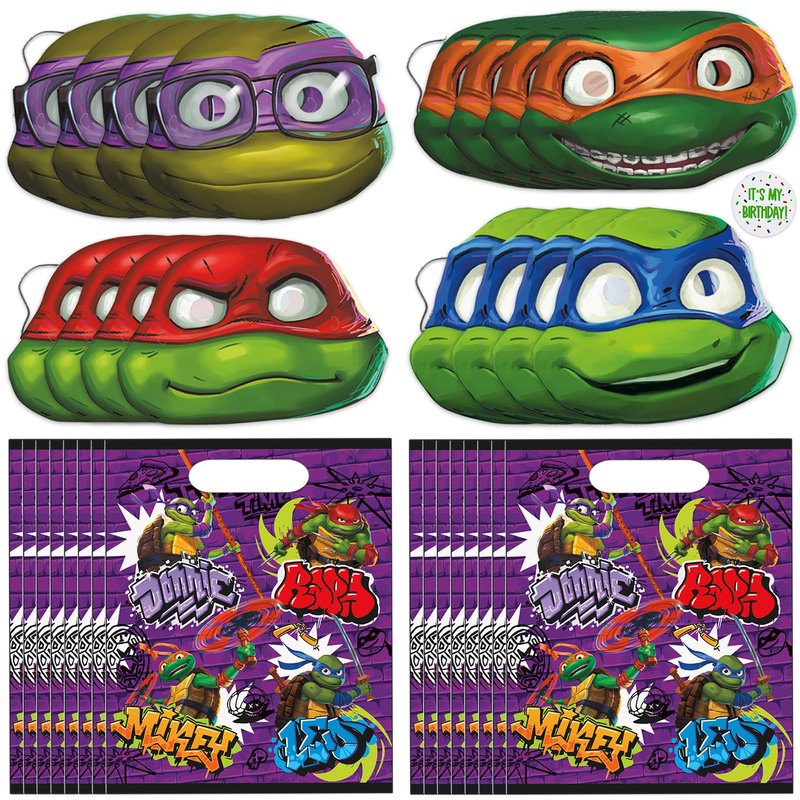 - INCLUDES: This set includes the following Teenage Mutant Ninja Turtle party decorations: 16 party favor bags, 16 masks, and 1 It's My Birthday! sticker for the birthday child.