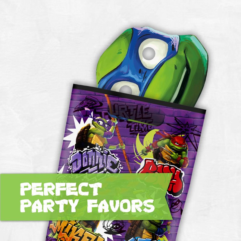 - FAVOR BAGS: Elevate your Teenage Mutant Ninja Turtles party supplies with our set of 16 party favor bags, each measuring a perfect 7.25x8.25 inches, ensuring ample space for all the goodies your guests will adore.