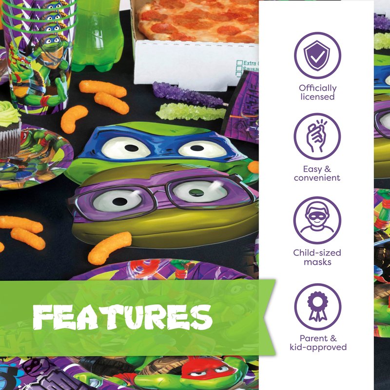 - OFFICIALLY LICENSED: This TMNT party supplies set is part of Unique's Officially Licensed TMNT Mutant Mayhem movie collection. Additional items such as Ninja Turtle party favors, table covers and Ninja Turtles party decorations are also available.