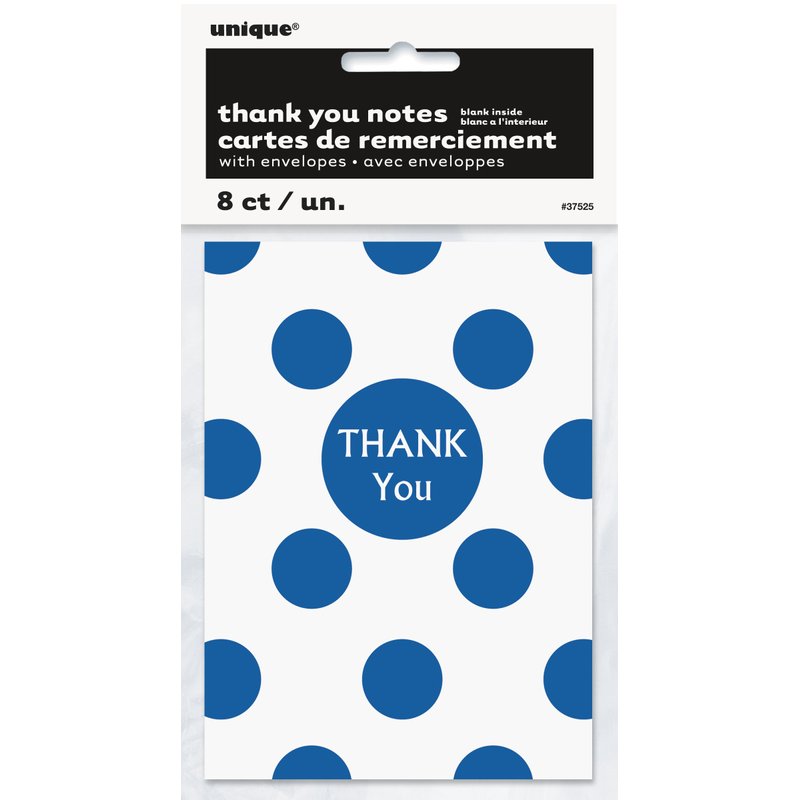- Package of 8 Royal Blue Polka Dot Thank You Cards