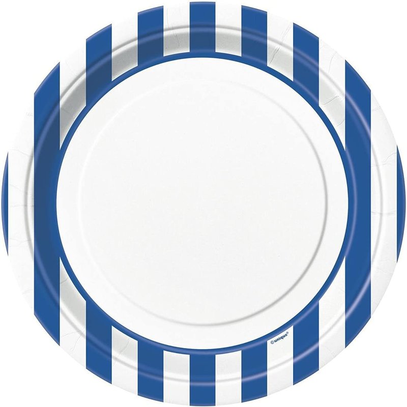 Unique Royal Blue Stripes Round Dinner Paper Plates-9" 8 Pcs