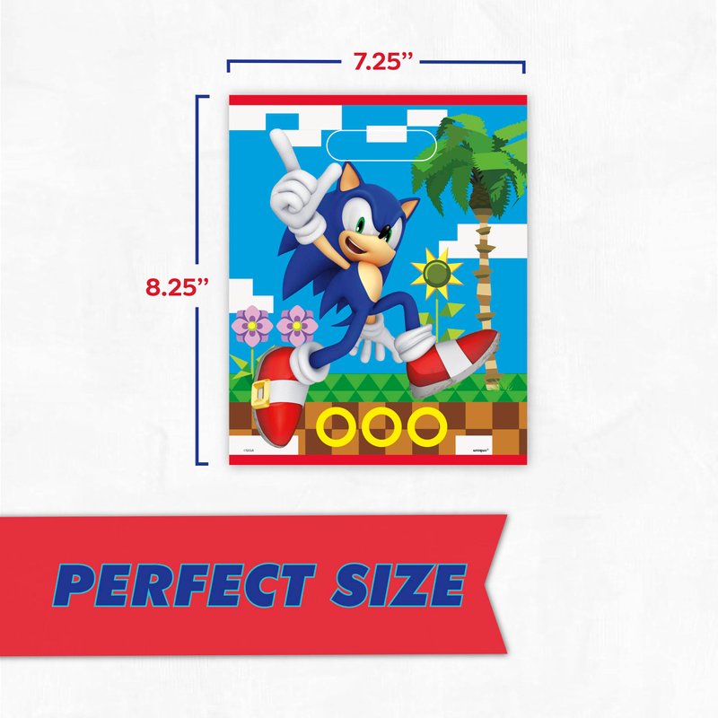 - Perfectly sized, these Sonic party bags measure 7.25 inches by 8.25 inches.