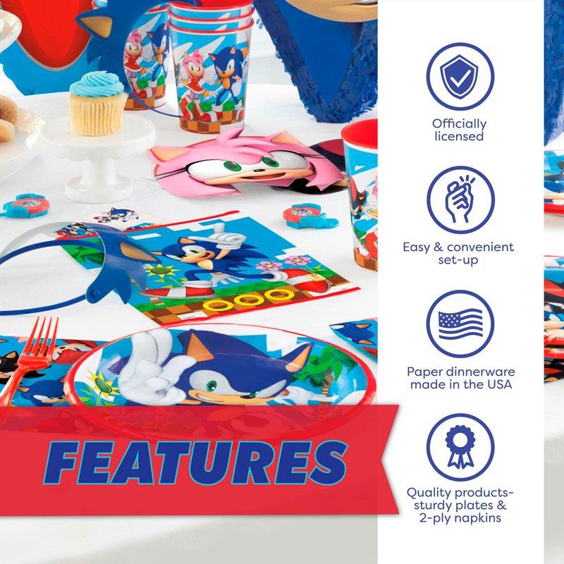 - OFFICIALLY LICENSED: This Sonic party decorations set is part of Unique's Officially Licensed Sonic birthday decorations collection. Additional items such as Sonic party favors and Sonic balloons, extra tablecloths and Sonic birthday party supplies are also available.