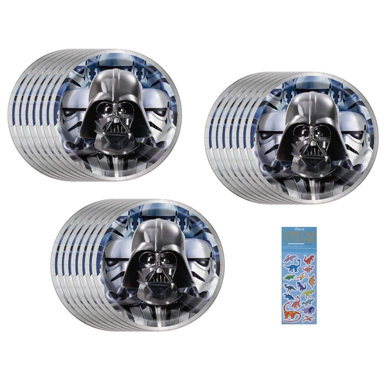 Unique Star Wars Classic Birthday Party Supplies Bundle Pack includes 24 Dessert Cake Paper Plates and 1 Dinosaur Sticker Sheet
