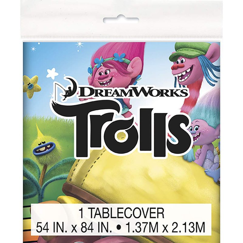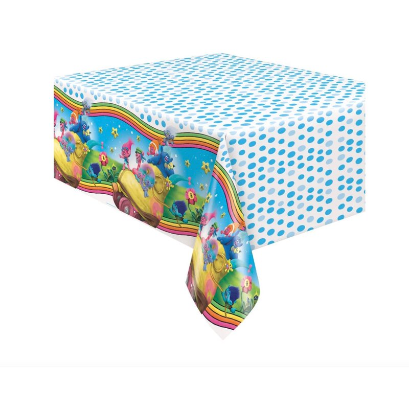 - Table cover is 54"x 84" and features Poppy, Branch, Cooper, DJ Suki, Guy Diamond, Biggie, Smidge, Fuzzbert, and Creek.