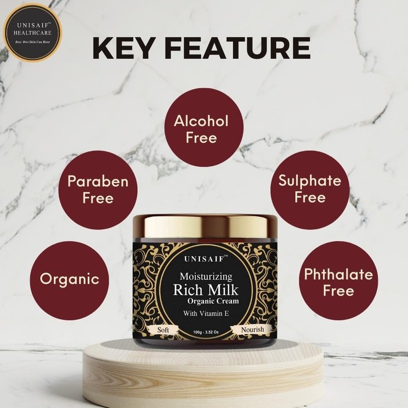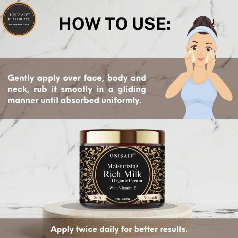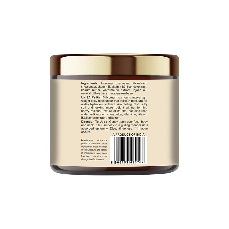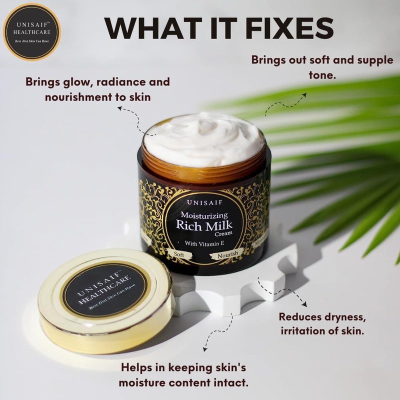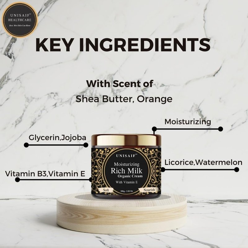 Unisaif Rich Hydrating Milk Shea Butter Cream - Moisturizing Facial Skincare Cream with Shea Butter, Vitamin E | Reduce Dryness with Milk Moisturiser Face Cream (100 g)