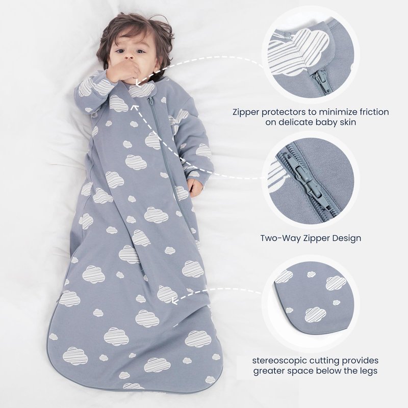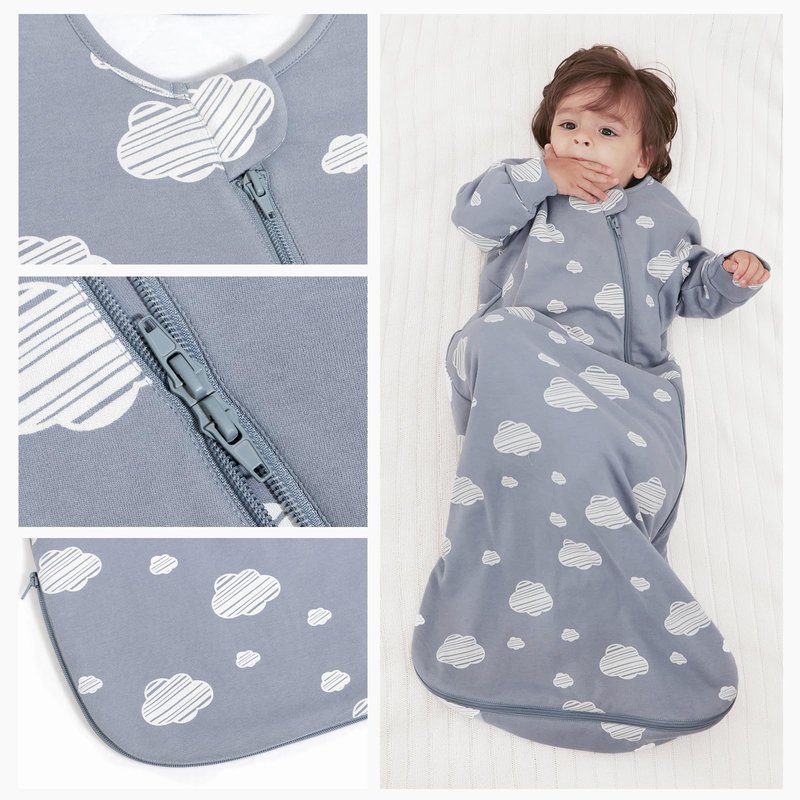 - Double zipper + anti-slip design: The zipper closure makes the baby sleeping bag convenient to use. Opening from the bottom, it allows for easy diaper changes during late nights. The neckline is carefully designed to ensure a secure fit, preventing the baby from slipping into the sleeping bag and avoiding scratches to the baby's chin. The split-leg design provides better mobility for the baby.