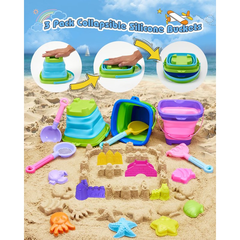 - Perfect Sand Toys Gift for Kids Girls & Boys: Our collapsible sand toys for beach is made of eco-friendly material, non-toxic, meeting US toy standards, and smooth without burrs. All toys are in perfect size for kids to grip. This beach sand toys set is not just for kids beach, also great sand box toys, kids pool toys, backyard toys, bathtub toys, snow toys. This cute baby beach toy set is a great surprise gift for your child.