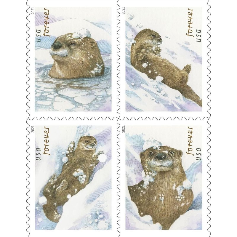 United States Postal Service Otters in Snow Postage Stamps (1 Booklet of 20 Stamps)