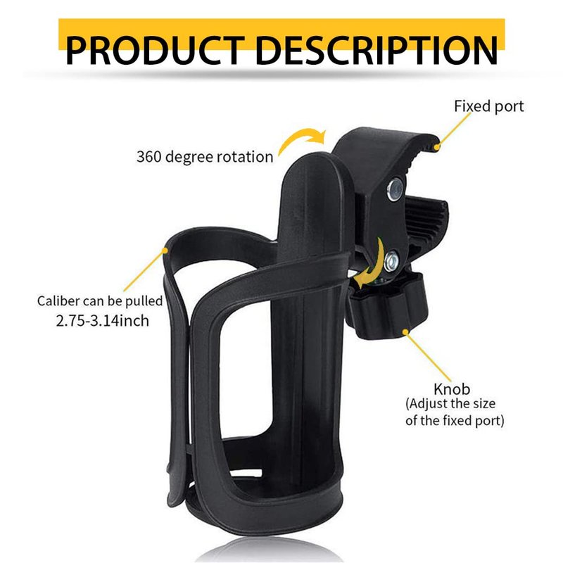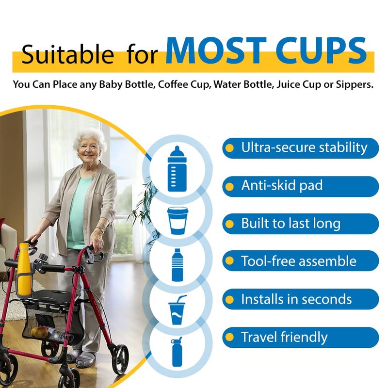 Universal Adjustable Cup Holder for Strollers, Walkers, Wheelchairs, Rollator & Knee Scooters Drinking Cup Holder, Bottle Holder, by Tulimed