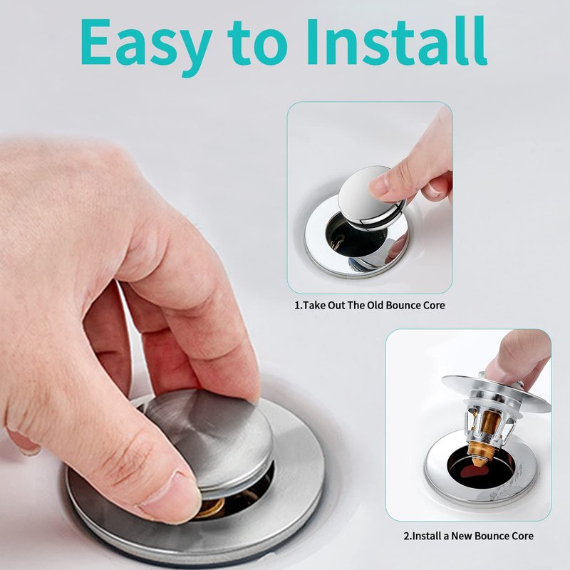 - 💦[ Easy to Install ] No tools are needed, it can be installed easily with bare hands. You just take out the old bounce core and install a new bounce core. Anyone can install the pop-up drain because of its simple structure. If you want to use it for a larger sink hole diameter, you can use the rubber ring we included to increase the inner diameter of the sink plug.