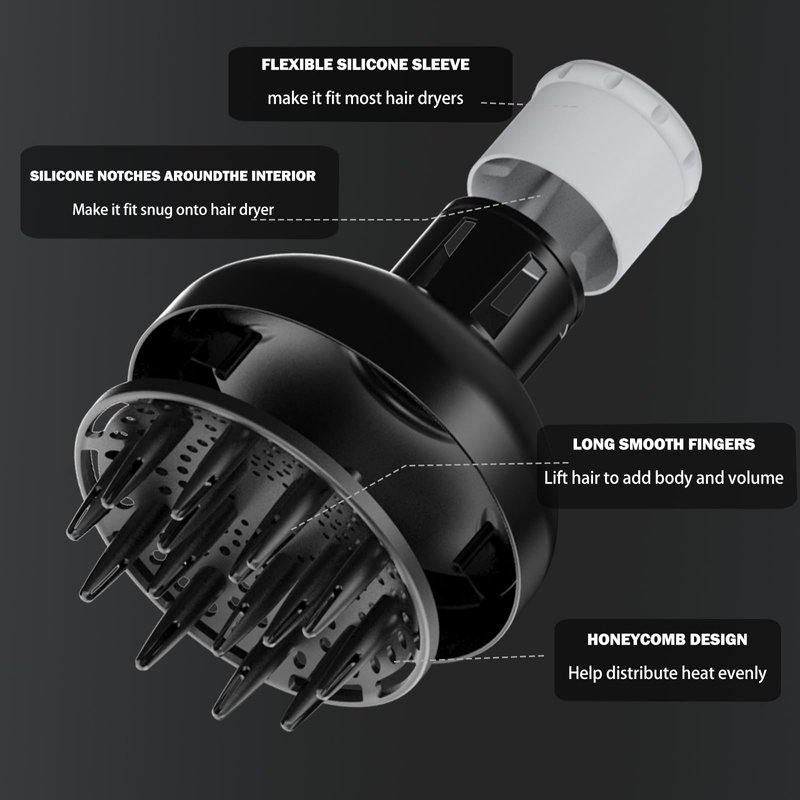 - 【Reasonable Design】The fingers of the hair diffuser attachment lift the hair at the roots, giving your hair added body and volume,while The honeycomb design of the diffuser helps to disperse the air evenly across a larger section of hair.This reduces the risk of heat damage and helps to dry the hair more evenly.Therefore, our diffuser is perfect for creating sculpted or molded styles