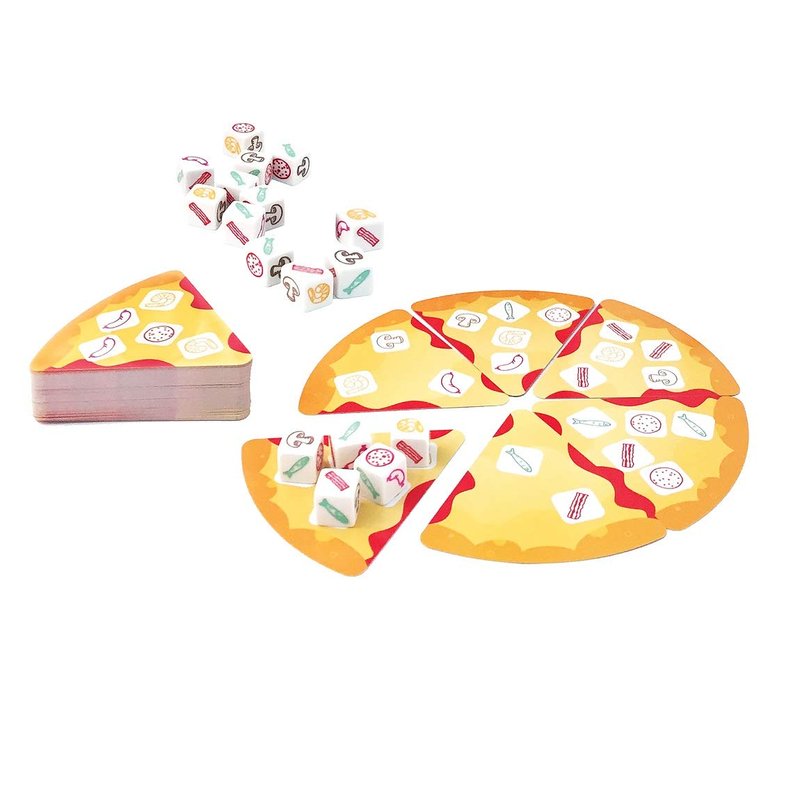 - Fast Fun with Dice and Cards: Just roll the dice to complete a slice. Continue until your entire pizza is complete. The first player to complete a pizza wins.