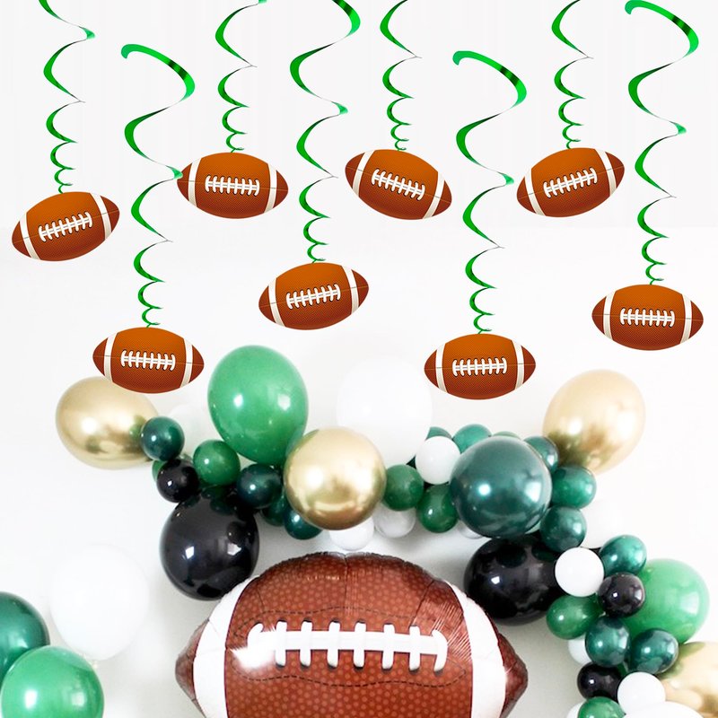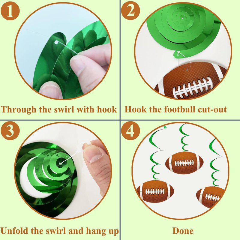 - Package Included: These football party decorations contain 2 sets, 8pcs green foil swirls and 8pcs double-sided football cutouts, sufficient quantity to meet your party decoration needs