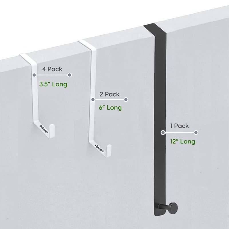 - ✔CUSTOM MADE AND REVERSIBLE: Each pack contains 4 super strong door hanger hooks that fit over the two most popular door widths, 1 3/8" (35mm) and 1 3/4" (44mm) wide, meaning these back of door hooks will fit snuggly, without moving around.