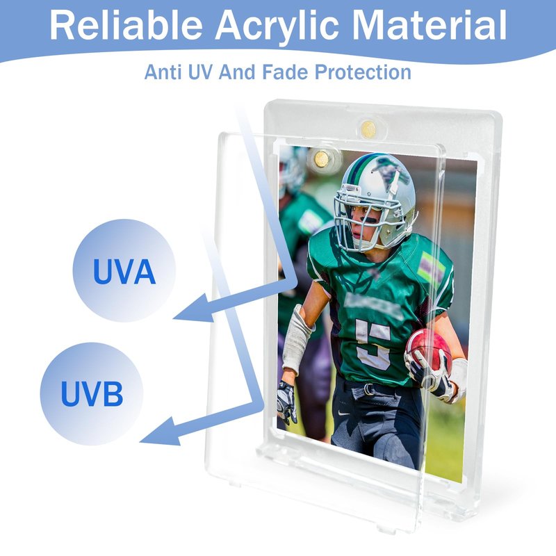 - Reliable Material: Our card holders are equipped with UV-blocking material to shield your cards from scratches and yellowing, preserving their original colors. The four diamond corners prevent the cards from bending, ensuring your cards stay pristine