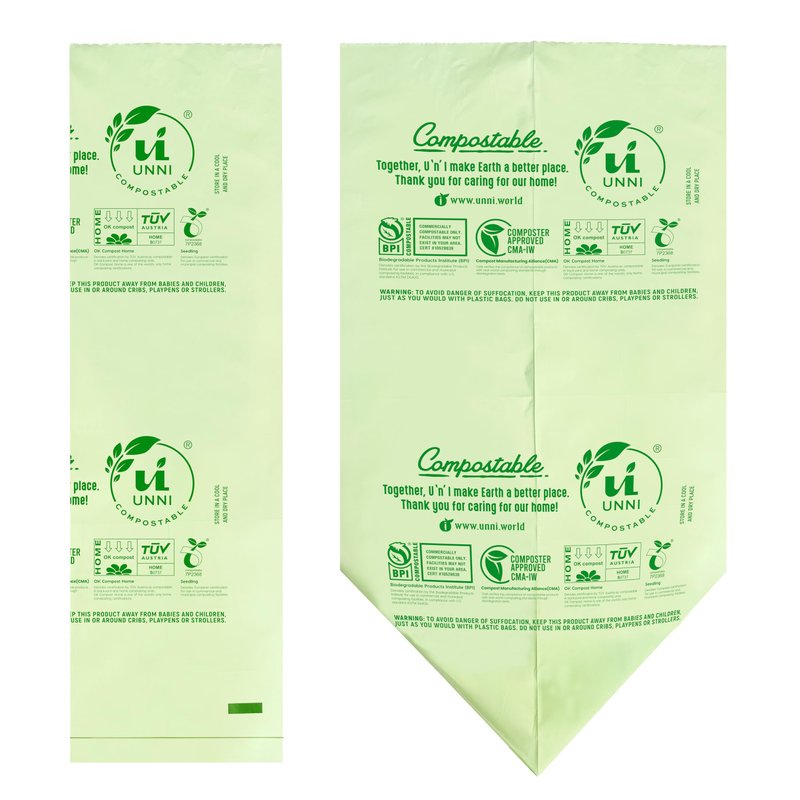 - UNNI compostable bags are the ethical choice for a cleaner environment and an ECO-FRIENDLY future. Thank you taking care of our planet for FUTURE GENERATIONS by replacing plastic with our sustainably manufactured, compostable bags. Together, U ‘n’ I make Earth a better place.