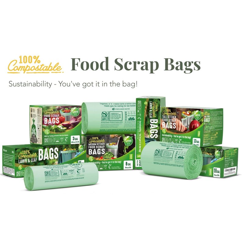 - HIGHEST BIOBASED CONTENT: UNNI Compostable Bags are made from plant starches and contain NO polyethylene. Bags are durable, nontoxic, easy to use and great for the environment.