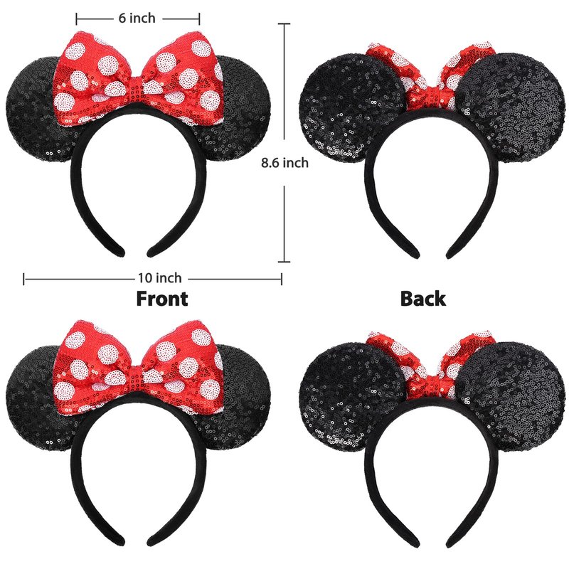 - 【Classic and Special Design】Featuring white polka dots and red bows, these mouse ears will never go out of style. Double sequins erect ears and big bows make mouse ears more three-dimensional. You can't go wrong starting your day with these classic polka dots and red bow mouse ears.