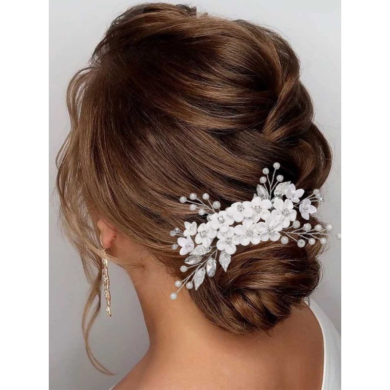 Unsutuo Flower Bride Wedding Hair Comb Silver Pearl Bridal Hair Accessories Leaf Hair Piece for Women and Girls