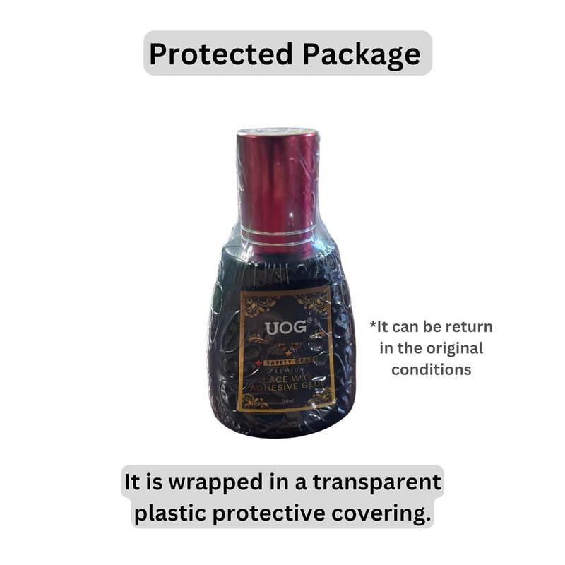 Introducing UOG wig glue, your ultimate solution for wig slippage! Our high-quality UOG wig glue adhesive provides a strong and secure hold for your wig, keeping it in place all day. Easy to apply and remove, Our UOG wig glue dries clear, ensuring a comfortable and seamless experience. It suits all types of lace front wigs – human hair, synthetic, and blended. Embrace versatility and convenience while transforming your appearance with a beautiful, realistic wig. UOG Wig Glue Features Revealed! Allergy-Free Quick Drying 1 -3 Layers to get Optimum Hold Hold Safety-Grade Eco-Friendly Ingredients Odorless Non Toxic Water Proof Invisible UOG Wig Glue 3 Times Larger Application Areas For Sensitive Skin and all Skin Types Suits All Poly, Lace Wigs, and Toupee Poly and Lace Wig Glue Adhesive Invisible UOG Wig Glue Easy Apply & Easy Remove Latex Free Sweat Proof 2-5 Week Strong Hold The effects vary from person to person UNVEILING THE POWERFUL BENEFITS OF UOG WIG GLUE Secure and Long-Lasting Hold Transparent UOG Wig Glue Comfortable and Lightweight Easy Application and Removal Professional Safety Grade No Adhesive remover required Secure and Long-Lasting Hold Transparent UOG Wig Glue Suits Active Lifestyle Better Elasticity and Comfortability Suitable for All Skin Types Non-Irritating and Non-Toxic Best For All Types Of Poly and Lace Wigs The effects vary from person to person Specification: UOG Lace Wig Glue Adhesive Model Number: UOG-001 Color: Invisible Clear Design in the U.S.A. Size: 38ml / 1.3oz Key Features: Invisible Finish: Blends seamlessly for an undetectable look. Strong Adhesion: Provides secure, long-lasting hold. Skin-Friendly: Gentle formula, suitable for all skin types. Easy Removal: Designed for hassle-free removal. Versatile Use: Ideal for various lace wig types. Usage: Clean application area, apply a thin layer, wait for tackiness, secure wig, and allow to set. Safety: Avoid eye contact, keep away from children.