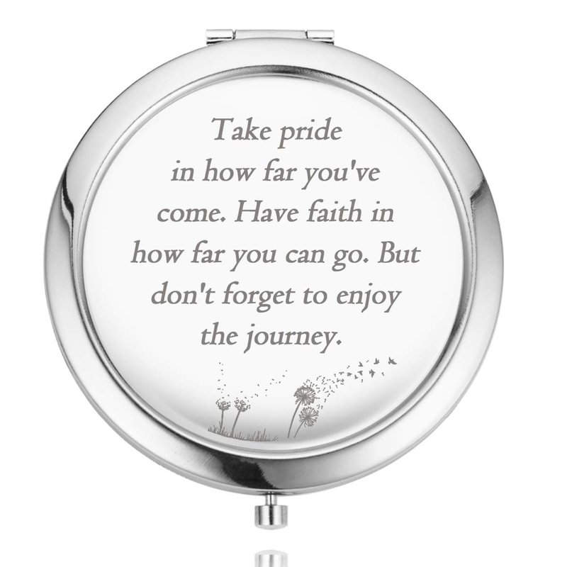 Wide application: These graduation Mirror are mainly for class of 2021 graduation party, also good tools for daily life usage accessories. Nice graduation gifts: Meaningful makeup mirror gifts for graduation, full of inspiration and hope, can be served as good gifts to your classmates, teachers, friends, families and so on. Package includes: 1x Compact Mirror 1 x Gift box