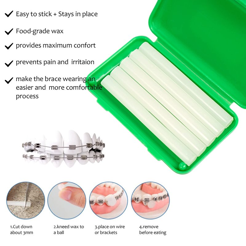 - ✔Orthodontic wax for braces: Medical-grade paraffin-based wax for protection against braces and dental appliance irritation to oral soft tissues. Dental Orthodontic wax for brace wearers, gum protection, helps you temporary relief from ligatures, wires, springs and brackets irritation and pain.