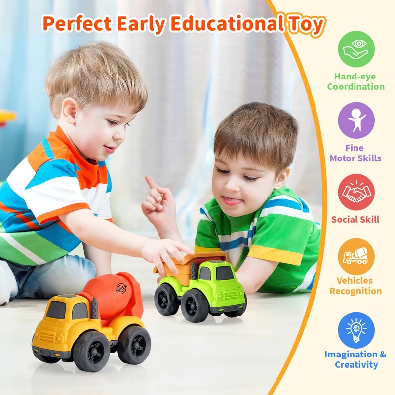- Toys for 1 Year Old Boy: Beep beep! Get ready for a fun journey with our 2-pack truck set, featuring a dump truck and mixer cement. Perfect for playdates at the park or fun time at home, these toy cars for toddlers 1-3 help enhance both gross and fine motor skills, introducing your child to sand hauling techniques in an funny way