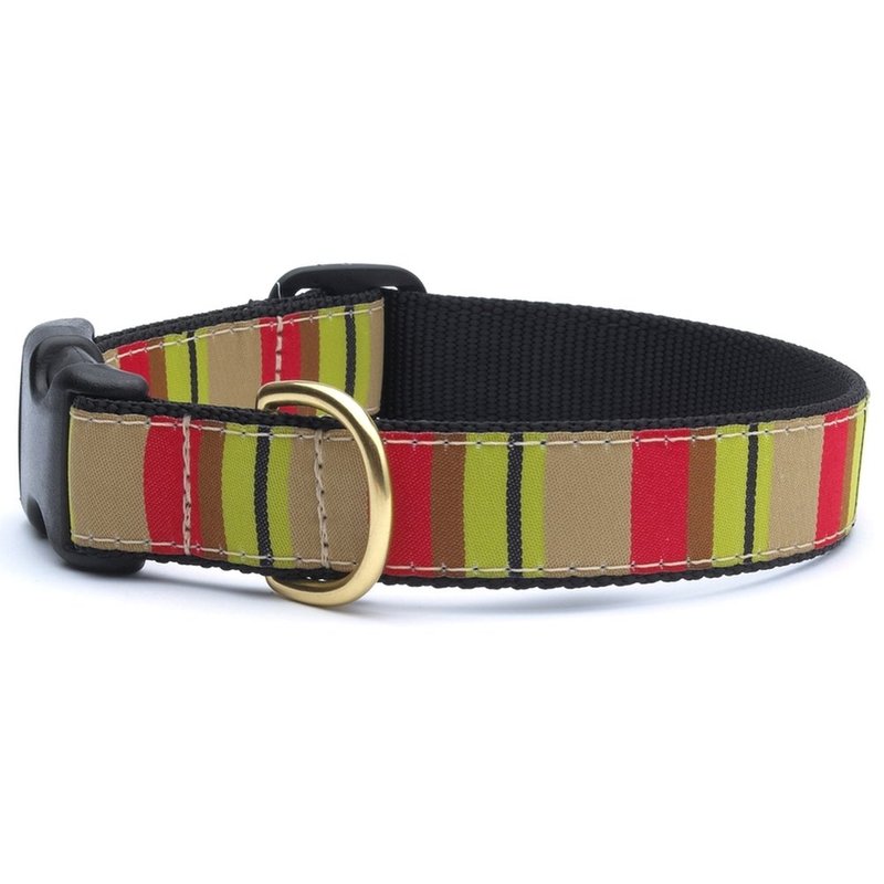 Fun, unique and innovative designs are made with the finest materials and are designed to last a lifetime. Up Country collars, leashes and harnesses are made from high-tensile strength nylon webbing with sewn on polyester/nylon decorative ribbons. The hardware on the collars, leashes, and harnesses is solid cast brass. The collar has a quick release buckle that is Coast Guard approved for high weight hold. To determine the collar size measure the circumference of the midpoint of the neck. Select a size range that best matches the neck measurement. Made in USA. Machine wash gentle cycle and drip dry. Not for use in Tie-out. Take a measurement around the midpoint of your dog’s neck to determine the collar size. Available Collar Sizes: X-Small (6 to 12 inches) 5/8 inch Narrow Width, Small (9 to 15 inches) 5/8 inch Narrow Width, Small (9 to 15 inches) 1 inch Wide Width, Medium (12 to 18 inches) 5/8 inch Narrow Width, Medium (12 to 18 inches) 1 inch Wide Width, Large (15 to 21 inches) 1 inch Wide Width, X-Large (18 to 24 inches) 1 inch Wide Width, XX-Large (21 to 27 inches) 1 inch Wide Width, —Available Leash Sizes:— 4 Foot Long 5/8 Inch Narrow Width, 4 Foot Long 1 Inch Wide Width, 6 Foot Long 5/8 Inch Narrow Width, 6 Foot Long 1 Inch Wide Width