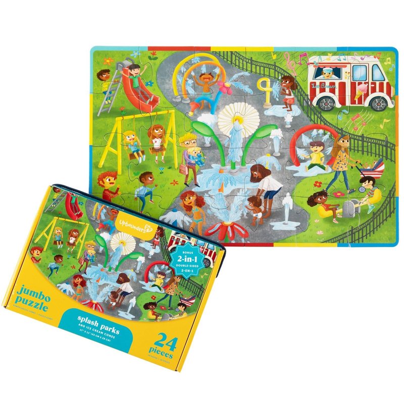 Upbounders Splash Parks and Ice Cream Cones - Double-Sided 24 Piece Kids Puzzle - Colorful Preschool Puzzle for Toddlers Ages 3+ (Multicultural)